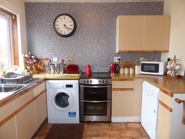 Good sized partly tiled kitchen and dining area with ample wall and base units. The kitchen is situated to the rear of the property and there is direct access to the lounge and back garden.