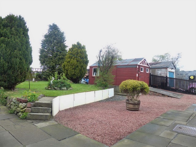 There is a single timber garage with double doors, a greenhouse and a shed/coal house with extra storage space.